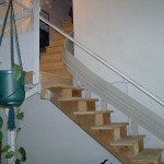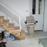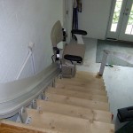 Notice in this installation how firmly and securely the guide rail is anchored to the stairs, ensuring safe and smooth travel from top to bottom and back again.